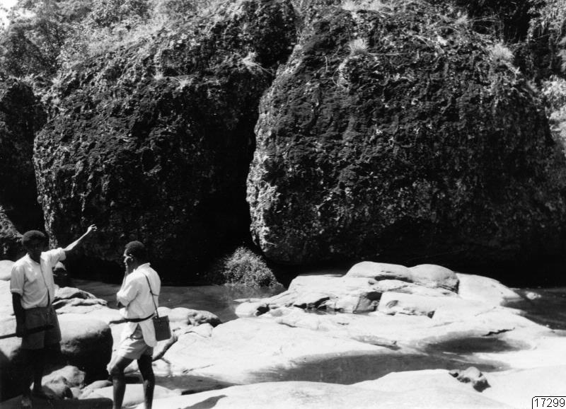 • Motiv: Nere vid Sigatoka-ån. I gamla Nadraus nordligaste del. Där Tui Nadrau badade. 19 oktober 1963. Foto av K.E. Larsson. (katalogkort)