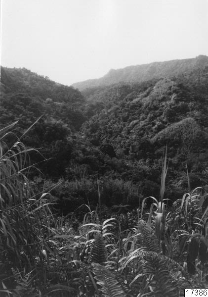 Motiv: Bilder mot nordväst och mot norr från byn. 23 oktober 1963. Lokal: Fiji-öarna: Viti Levu: Rewasau. Stam: . Foto av: K. E. Larsson, . Erh.: , . Nr. Neg. . Publ. . (katalogkort).