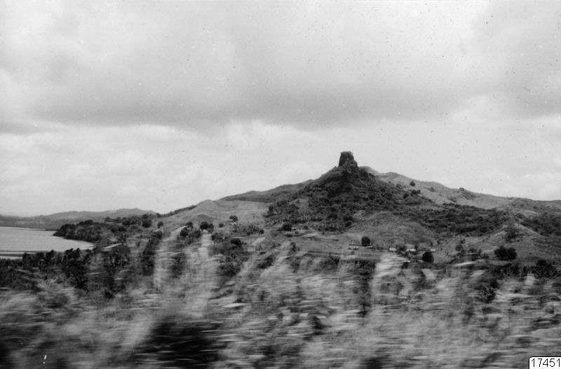 Motiv: Bergformation vid Navitilevu Bay. 12 november 1963.Lokal: Fiji-öarna: Viti Levu.Foto av: K. E. Larsson.(katalogkort)