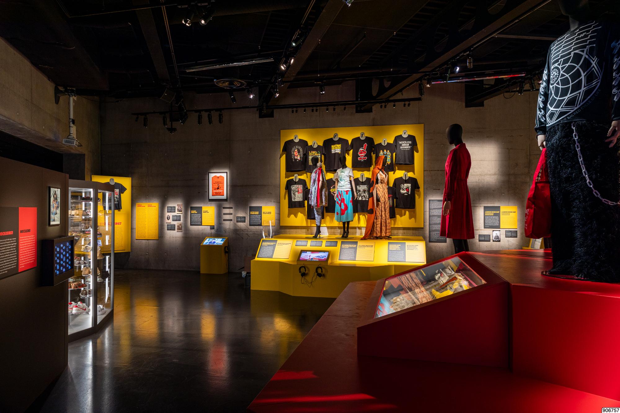 • Interiör av utställningen Native American Fashion på Världskulturmuseet (VKM).