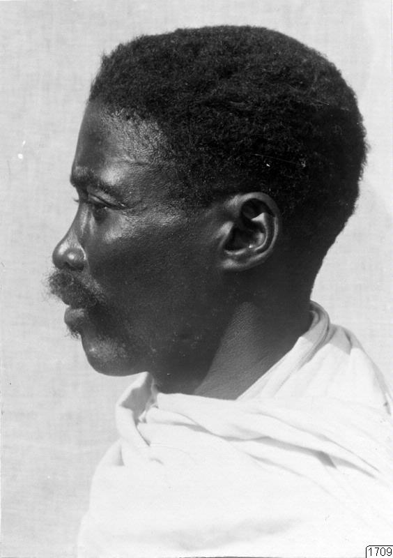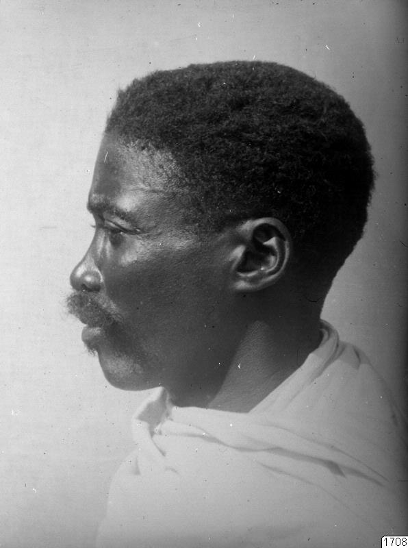 • Profilbild av en antimor-man från Tauanarivo. Se Linell & Kaudern: A contribution etc., Lund, 1936, pl. II. Bildark: 1708-1709.