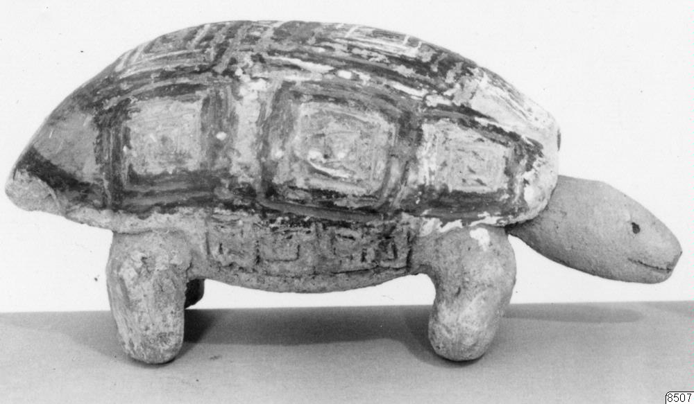 Motiv: Landsköldpadda av lergods. Leksak. Kat.nr. 1926.03.0264Stam: Palikur.Lokal: Brasilianska Guyana.Erh.: På avd:s beställning.Publ.: Curt Nimuendajú: Die Palikur-Indianer etc. Göteborg 1926, Fig. 18.
