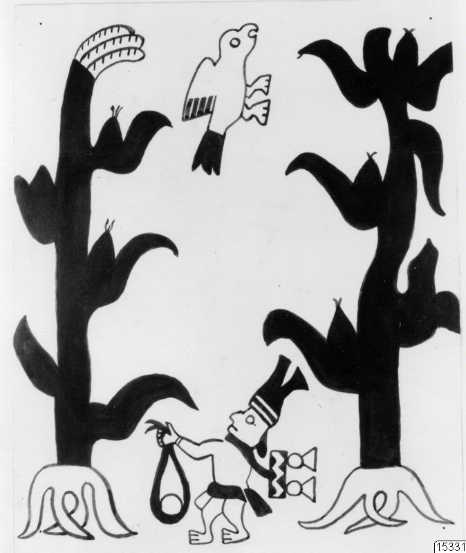 Motiv: Slungkastare. Motivet hämtat från ett lerkärl. Arkeologi.Lokal: Peru, Amerika.Foto: Avfoto (avfotografering), Thörnborg.Erh.: Till Arkivet.