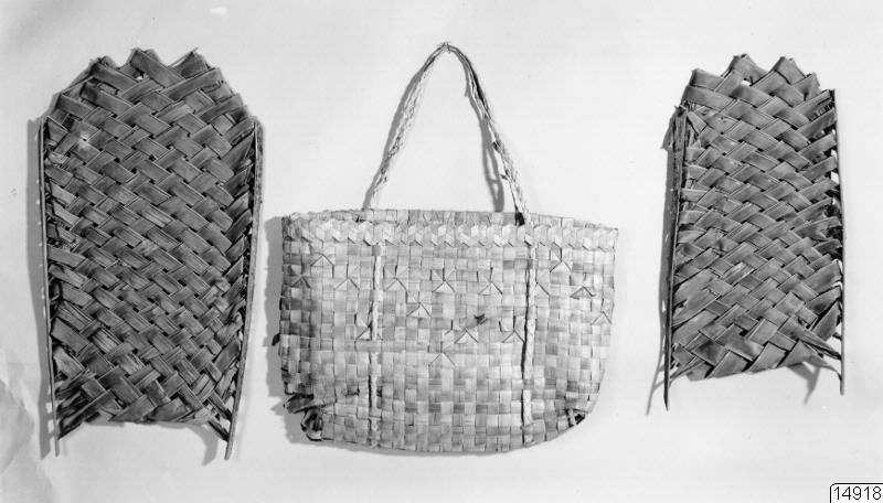 • Flätarbeten: (Fr. v.:) GEM 59.21.90: måltavla tupe-spelet; 21.95: bärkorg; 21.91: måltavla som ovan. (katalogkort)