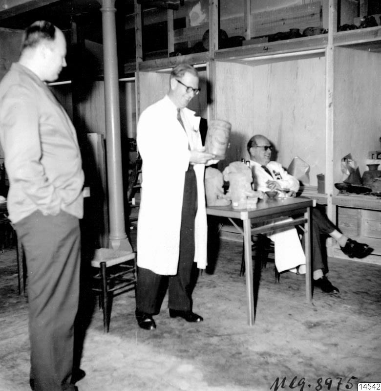 Den 4/11 1960 då museichef K. G. Izikowitz i spetsen för all tillgänglig personal på GEM (Göteborgs etnografiska museum) bjöd "30-åringen" Henry Wassén på sherry i arkeologisalen under vardande. Vi rörde oss alla mycket försiktigt bland lerpottorna. Närvarande utom Wassén och Izikowitz: K. E. Larsson, B. Thörnborg, Y. Wall, D. Svensson och fröken E. Palmers. Även närvarande flitige fotografen O. Brändström, som ej själv kom med på bilderna.