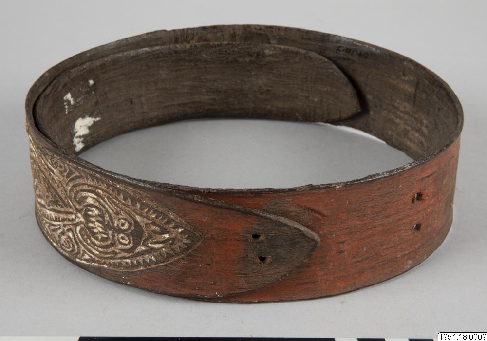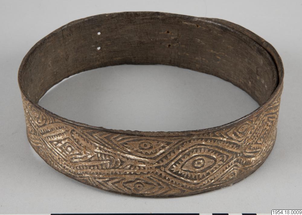Enligt generalkatalogen är samling 1954.18.1-78: " Etnografisk samling från Quaribari-floden, Purari-deltat, Papua, Nya Guinea, öarna Goodenough, Ferguson eller Normanby, Papua, Nya Guinea, samt missionsstationen Marobi i forna Tyska Nya Guinea. Samling gjord ungefär åren 1910-30 av säljaren Johan Alfred Johansson, Diö. Inköpt för 900 kronor. För närmare uppgifter se originalkatalogen." Bland ori...