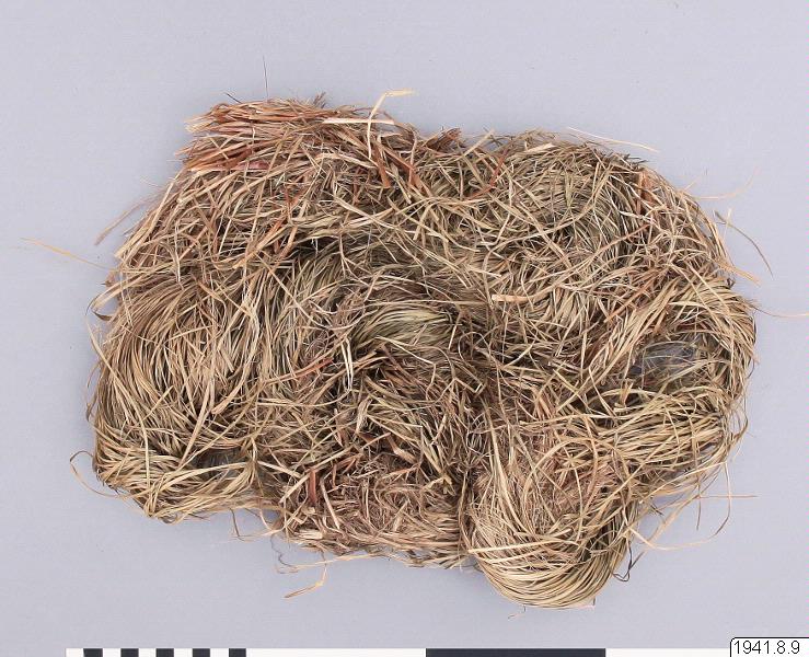 Höet skärs, skakas, läggs i ordning för att bäras hem med töm på ryggen. Det torkas och bråkas sedan över en skarpkantad sten eller stubbe. Därefter kammas det med en järntandad kam och gnuggas, varefter det flätas ihop och binds till härvor. (Manker, 1947: 169)