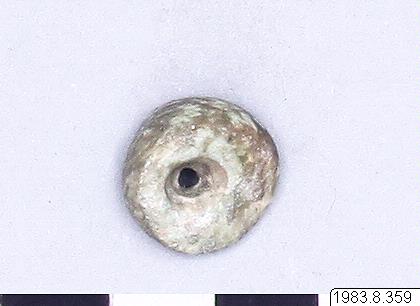 H: 1 cm, D: 1,6 cm. (katalogkort/originalbeskrivning)