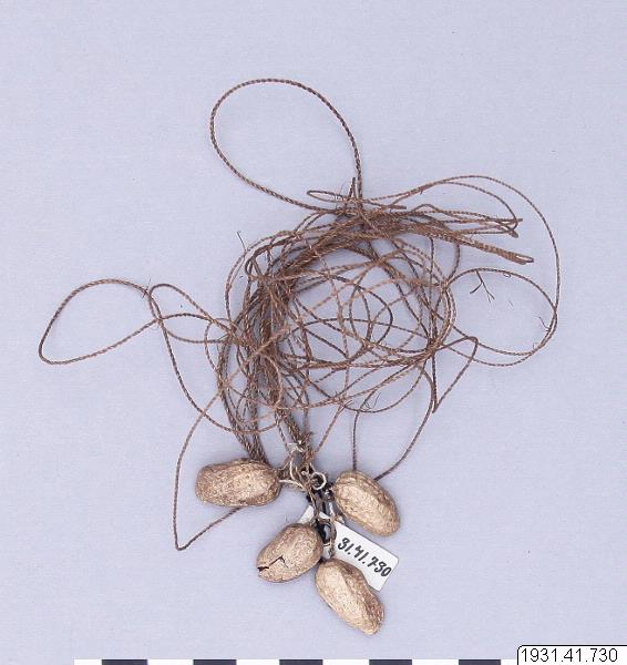 • Halsband med jordnötter. Hittades intrasslat i ett pannband från Canellas, varför det säkerligentillhört samlingen, fast det ej är upptaget i orig. kat.