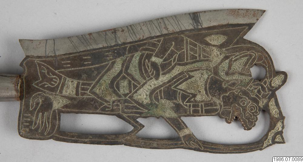 Köttyxa. Blad med beslagna ornament.L: 48 cm