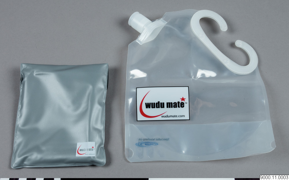 Plastic water bag. Before each of the five daily Muslim prayers, the faithful carry out a purification ritual (wudu). Particular movements are stipulated. It can often be crowded around the water taps. Sometimes no water is available, in which case one can wash oneself with sand, or make the prescribed movements in the air against a clean surface. To avoid having to wait for space at the taps, it can be practical to bring your own collapsible wudu water bag.