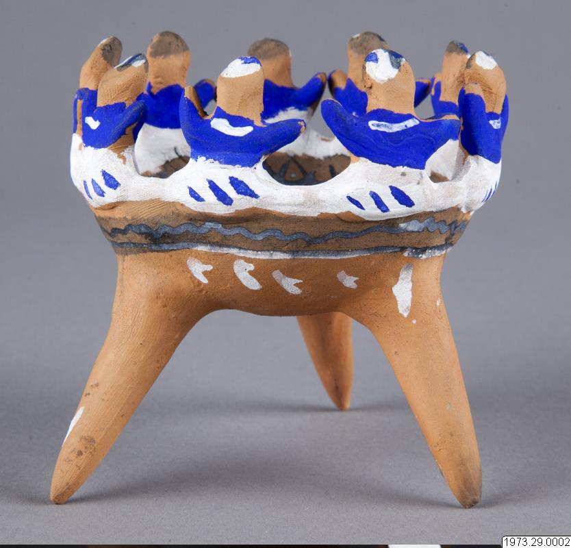 • Modernt rökelsekar. Enl. Säljare "During the night of All Souls, copal is burnt in cencers whilst the families of teh departed sit by their graves.- In the region of the Zapotecs in the state of Oaxaca the cencors are still fashioned in the same shape as they were hundreds of