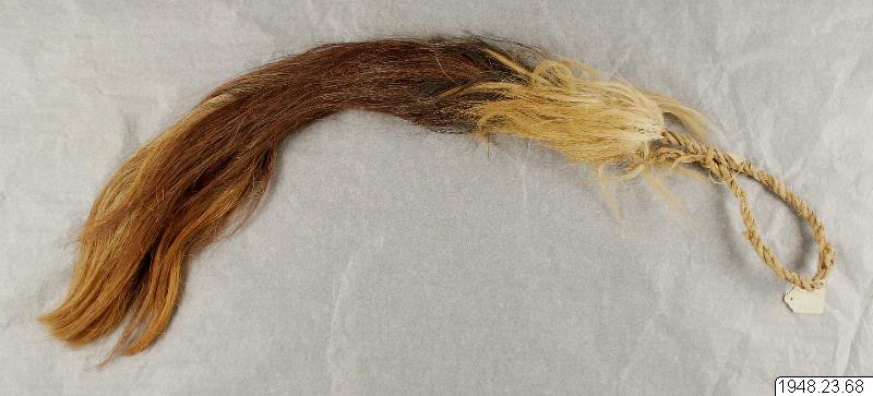 Dansviska, bäres fastsnörd tunt underarmen, mitt mellan handled och armbåge. Längd: 80 cm. Skänkt av konserv. B. Ekström, Upsala.