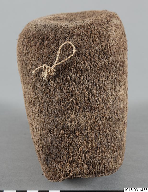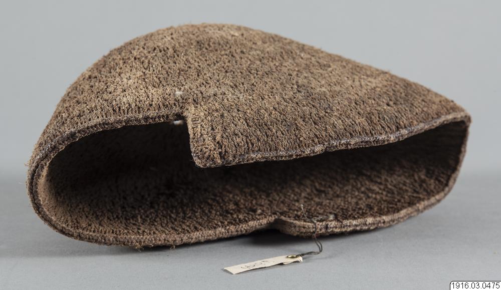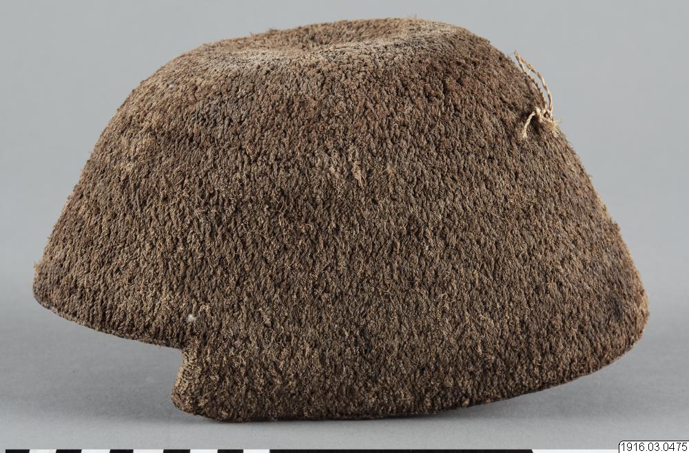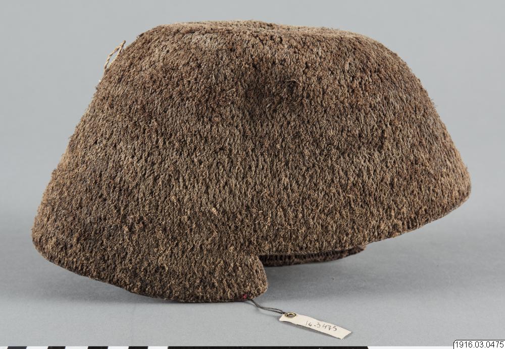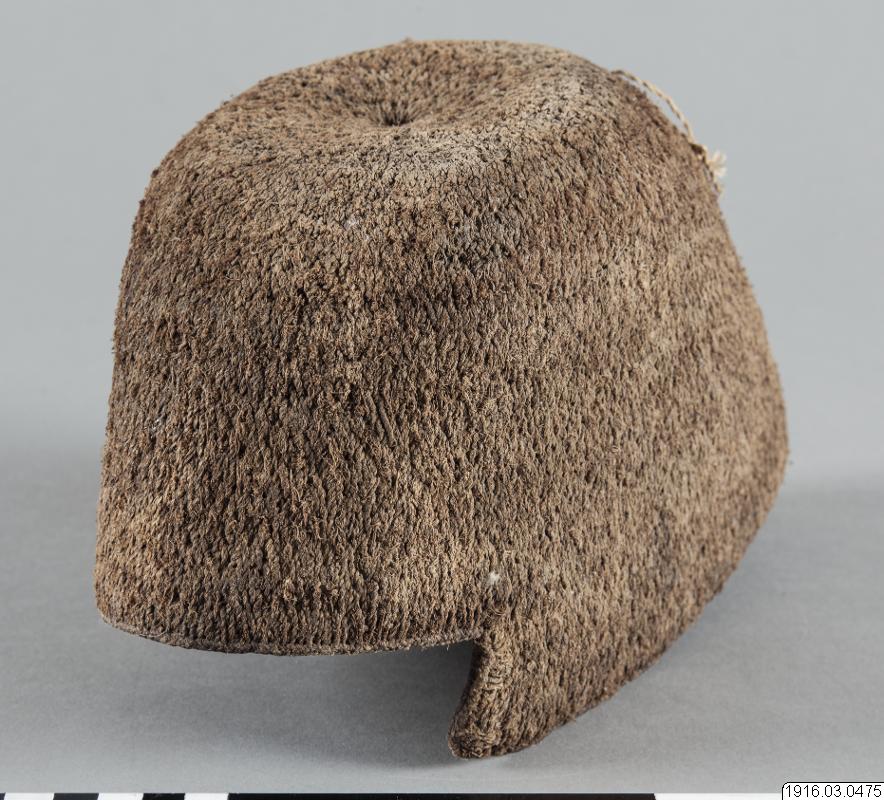 "Tóttosåma" mössa för män av bast (becha). Skall enl. förteckning i korr. 1926 vara bortbytt till Univer. of California. Finns dock på G.M. i aug. 1945.