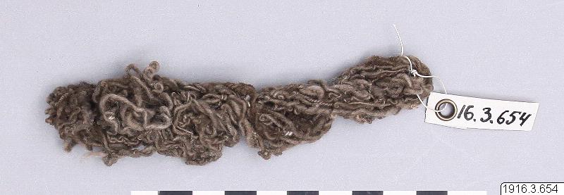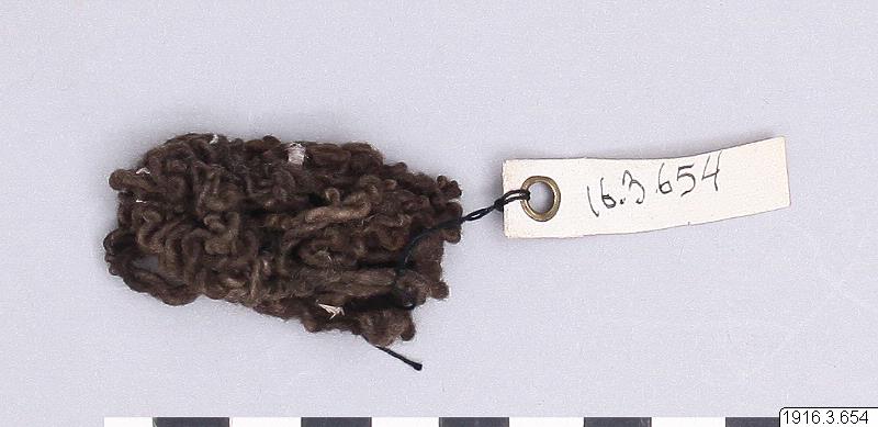Bomullsgarn färgat gråsvart med bladen av en slingerväxt "sikkårá" Utan nummer i maj 1950 (katalogkort/originalbeskrivning)