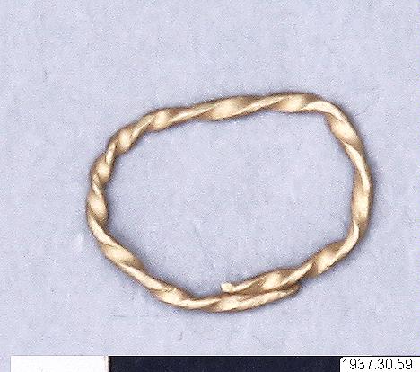 Ring av smalt bleck av guldlegering. Gåva av ing. Paul Bergsöe, Köpenhamn