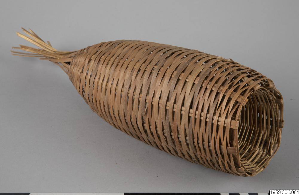 Flätad mjärde. Längd: 43 cm. Gåva av K.G. Izikowitz, Göteborg, 6/11 1959