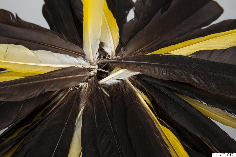 Icteridae / Cotingidae (?)*: obestämd art [åtminstone vissa kan vara pennor från någon Tukan (Ramphastos)]