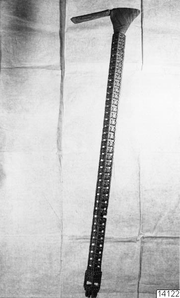 • Ceremoniyxa. Ett tväryxblad av sten med en femsidig sektion: Bladet fastsurrat med kokosgarn. Det långa trähandtaget är prytt med reliefer, ofta i genombrutet arbete.