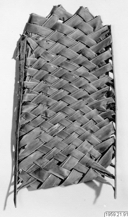 • Flätad målmatta i tupe-spelet. Längd: 49 cm. Se 59.21.10 o. 28. Funnen utan etikett och senare identifierad av insamlaren.