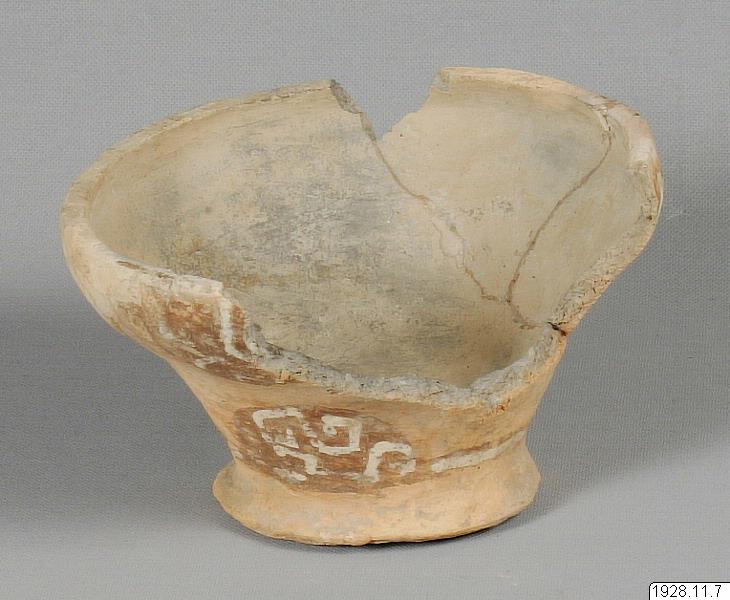 • Skål av lergods, fragmentarisk. (katalogkort/originalbeskrivning)