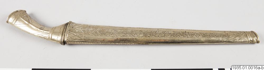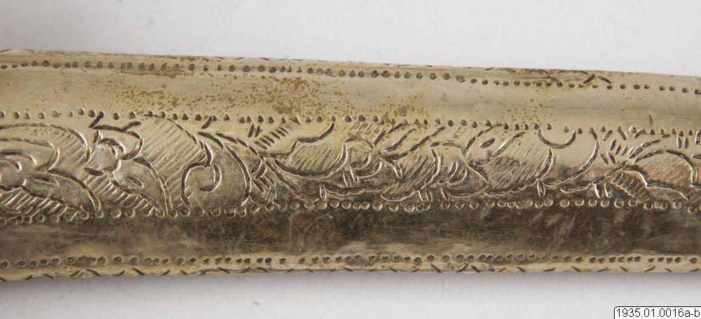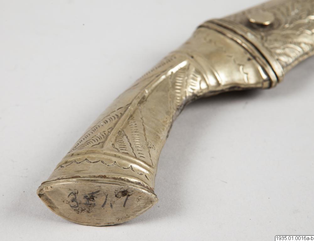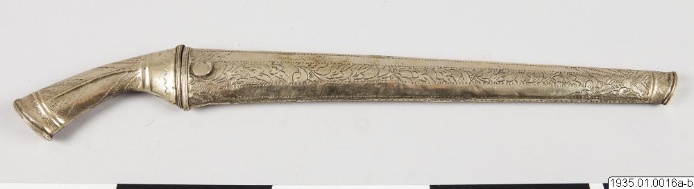• Kniv, helt silverbeslagen. Med slida. Köpt. (katalogkort/originalbeskrivning)