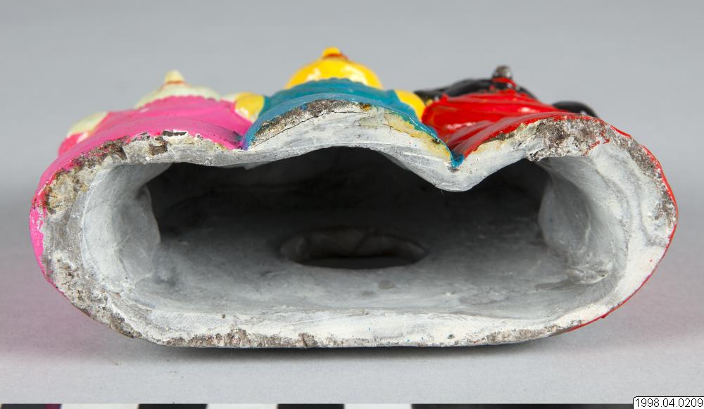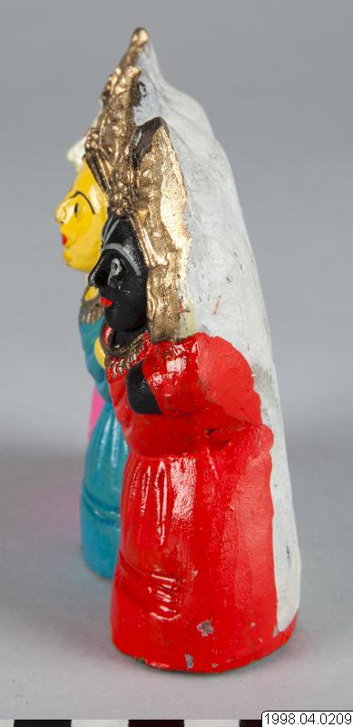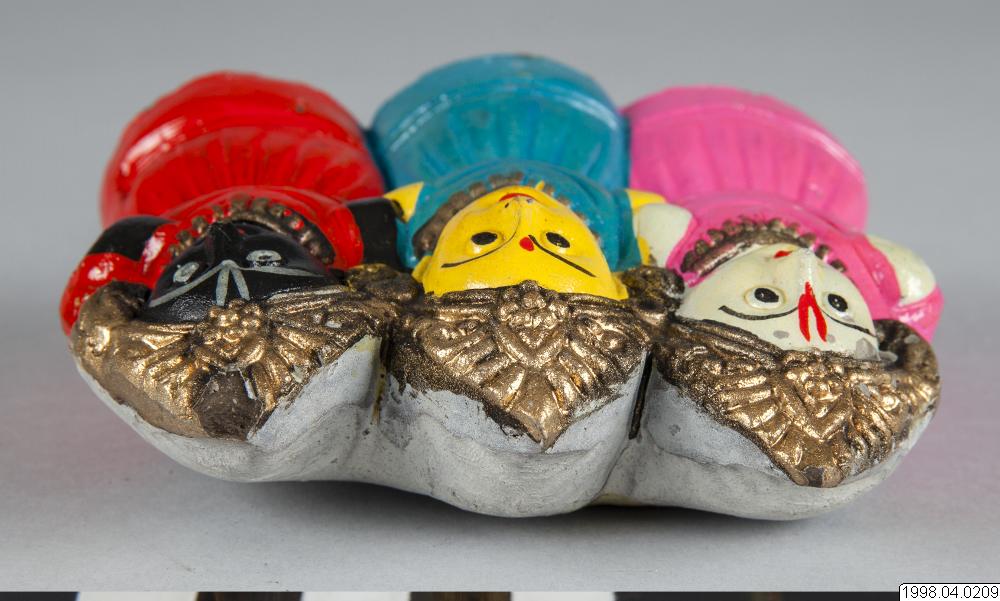 • Omålad gudastatyett i bränd lera föreställande Balabhadra, Subhadra och Jagannatha. Figurer av lera kan vara formade för hand eller gjutna i form, utsmyckade med inristade eller graverade mönster, omå... Visa hela