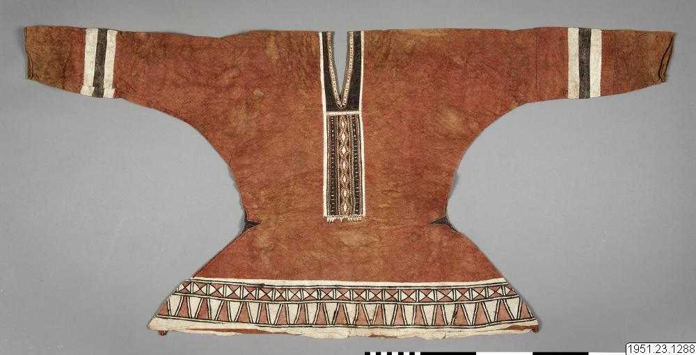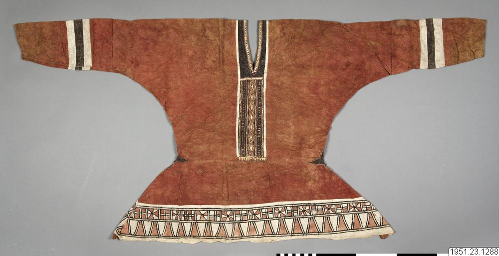 Halíli. kvinnotröja av basttyg med målade figurer. Även applikationer. Orig.nr 2014