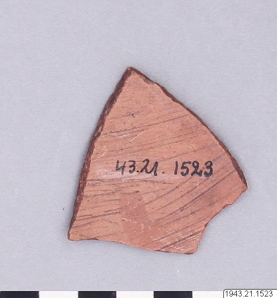 Lerkärlsfragment. Västra sidan av ruinkullen. Schakt 11, Skikt 1, 0-50 cm. Obs. Schakt 11 avses ändras till schakt 8 i publikationen.