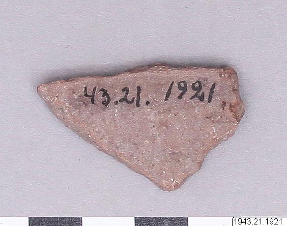 Lerkärlsfragment. Västra sidan av ruinkullen. Schakt 11, Skikt 3, 100 cm och djupare. se 43.21.1563.