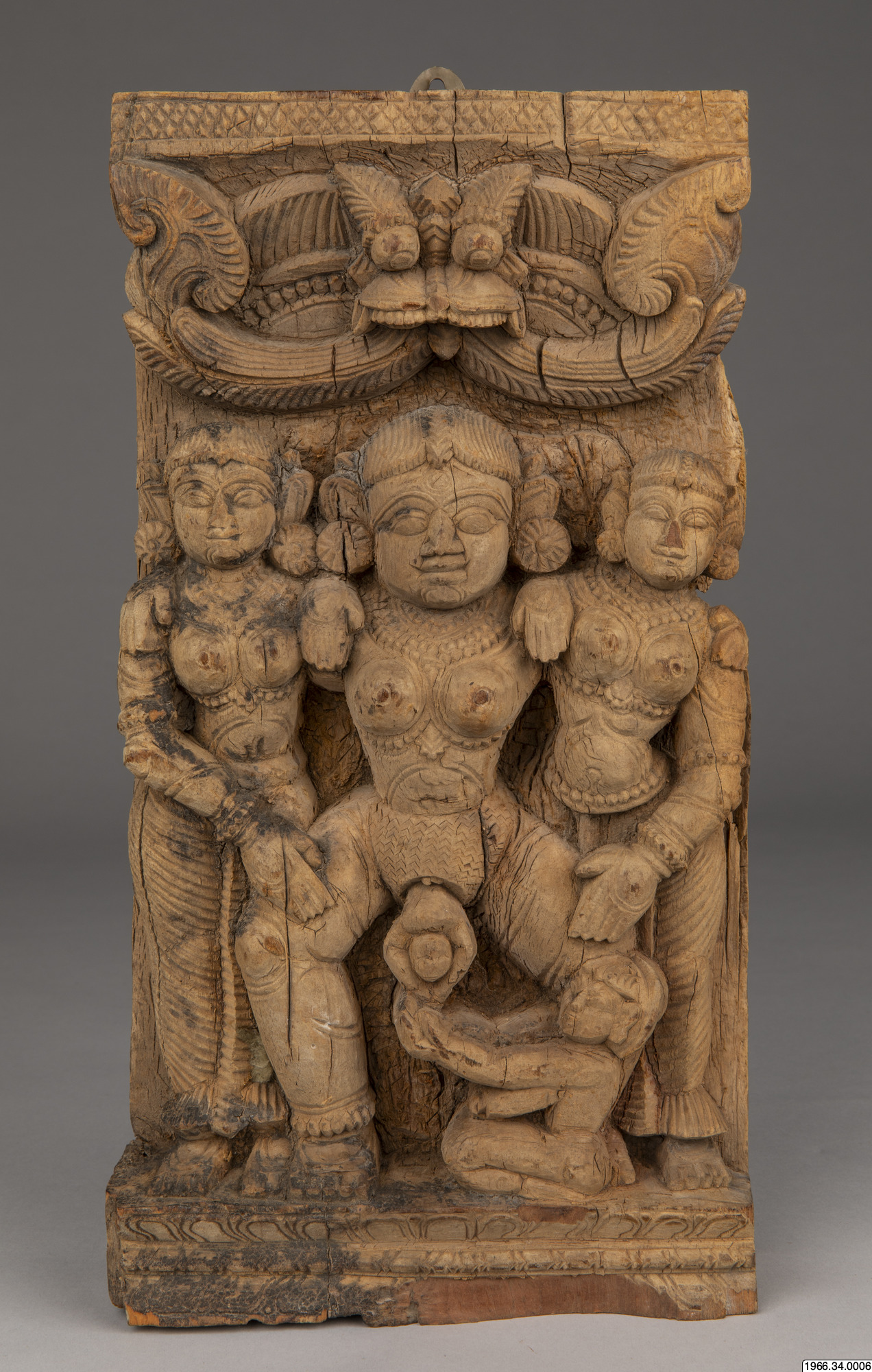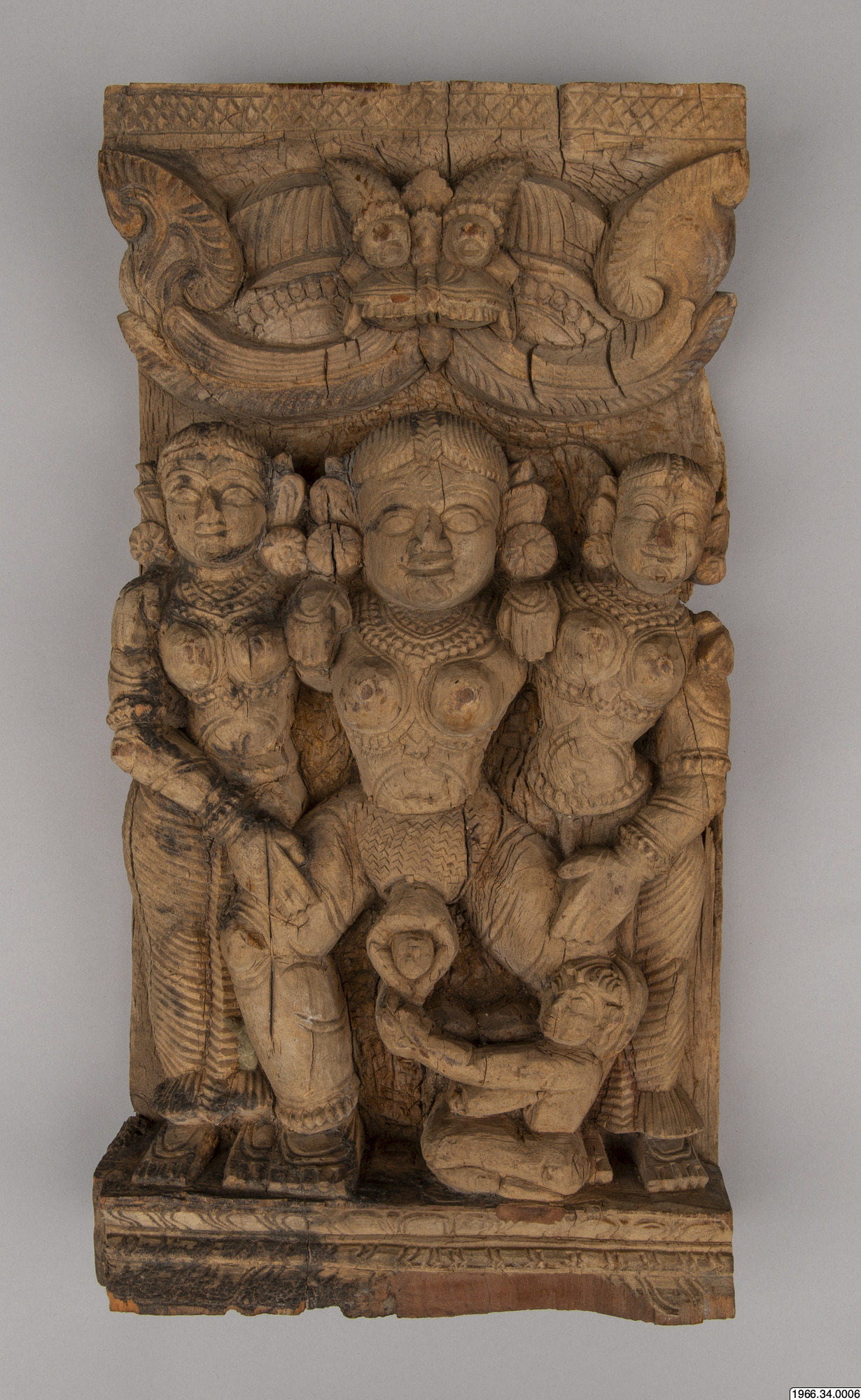 Överst på den här bilden sitter ett monster-huvud. Monstret heter Kirtimukhta. Han vaktar över den födande kvinnan. Han var så glupsk att han åt upp sin egen kropp. Det var inte så smart. Vi måste kun...