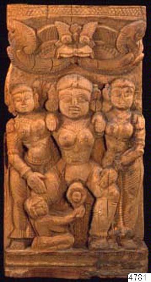 • Överst på den här bilden sitter ett monster-huvud. Monstret heter Kirtimukhta. Han vaktar över den födande kvinnan. Han var så glupsk att han åt upp sin egen kropp. Det var inte så smart. Vi måste kun... Visa hela