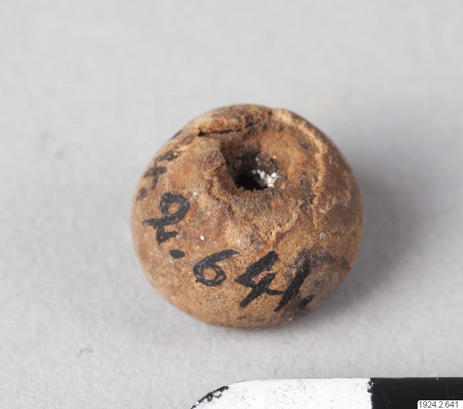 • Stenpärla, funnen i en mamas grav. (katalogkort/originalbeskrivning)