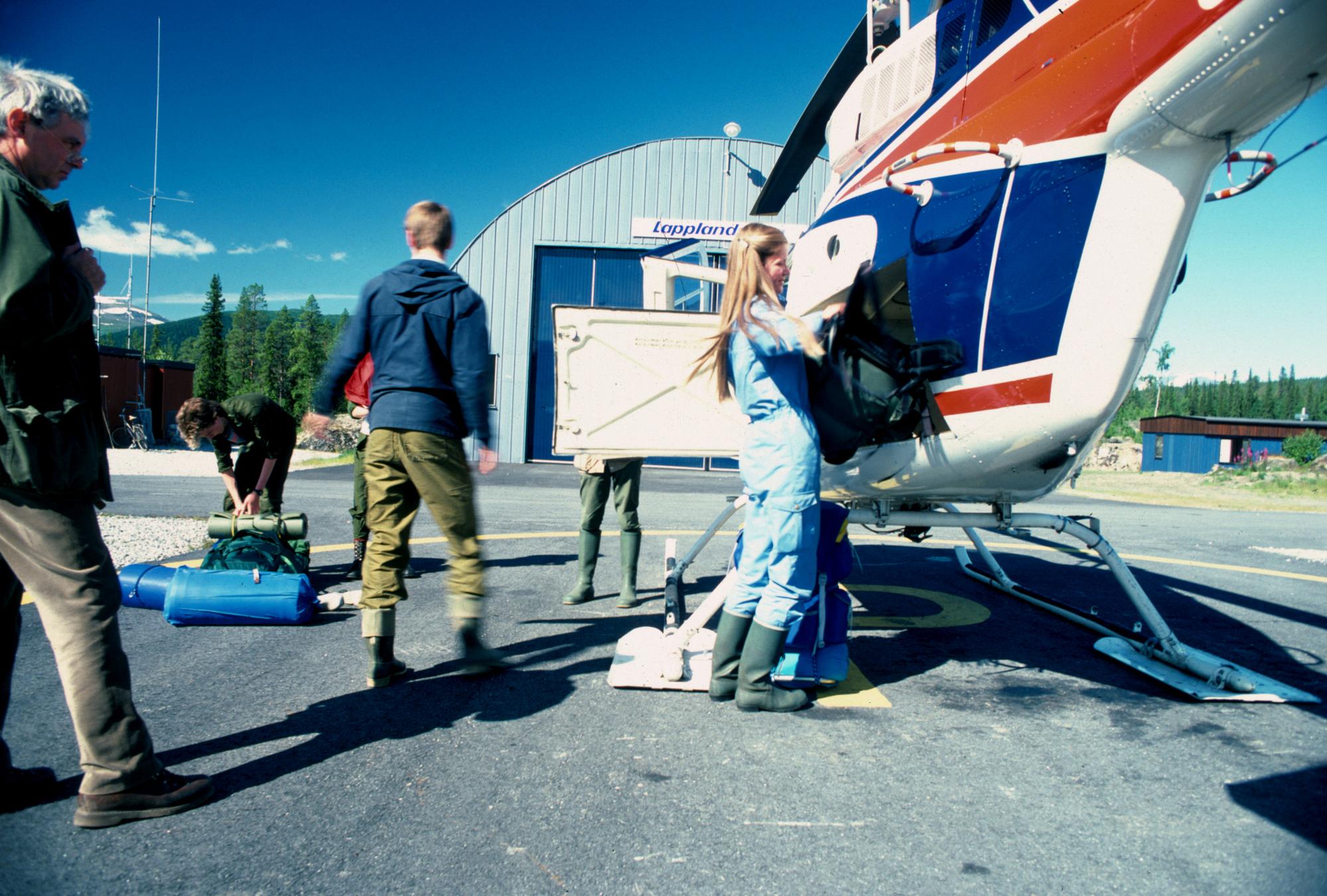 • Helikopter pilot Johansson Maria lastar pick-å-pack åt turister som ska flyga med henne och Lapplandsflyg