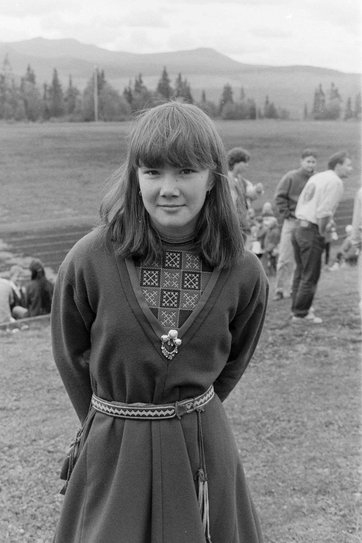 • Eli Larsdotter var prisutdelare under samecupen i Funäsdalen. Hon är klädd i sydsamisk kolt.