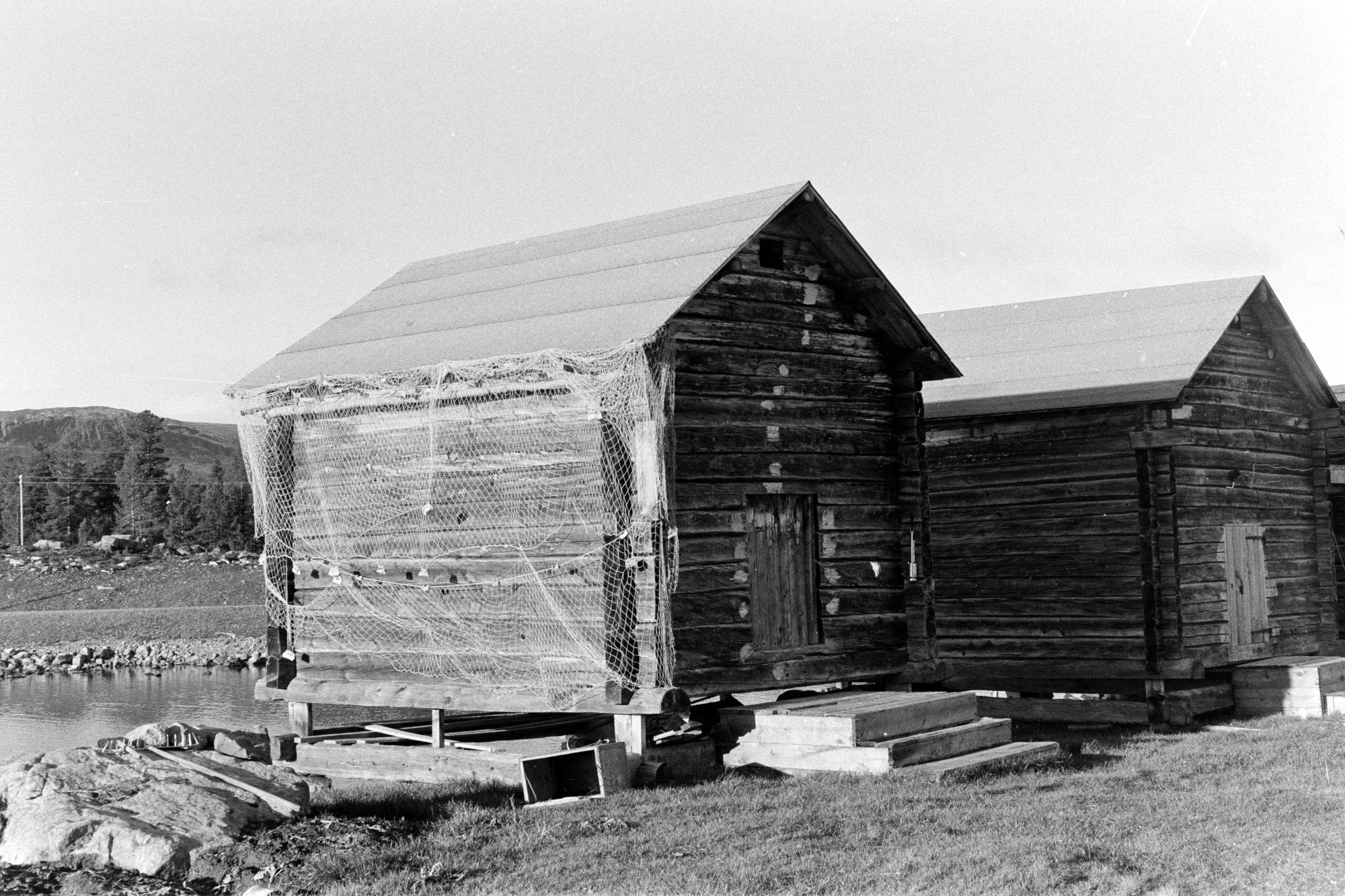 • Häbbren i byn Gibdno vid Tjieggelvas. På timmerväggen hänger bomullsnät på tork.