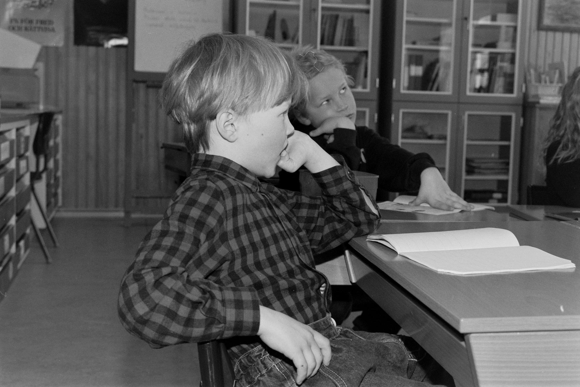 • Elever har lektion i klassrum på Tärnaby sameskola. Samefolket nr. 5 1993.