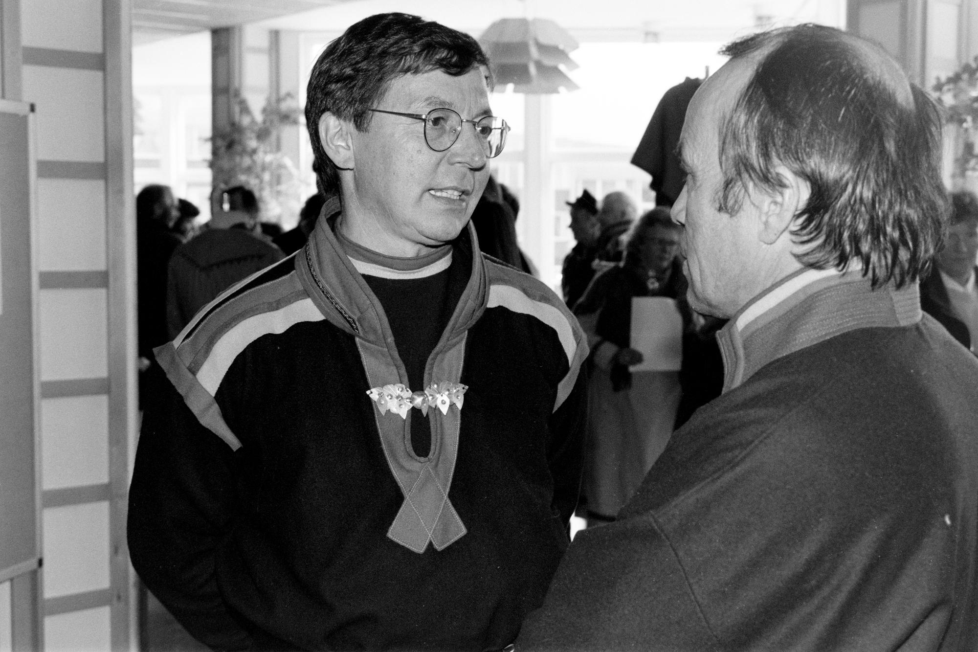 • Män samtalar på SSR:s, Svenska samernas riksförbunds, landsmöte i Kiruna.