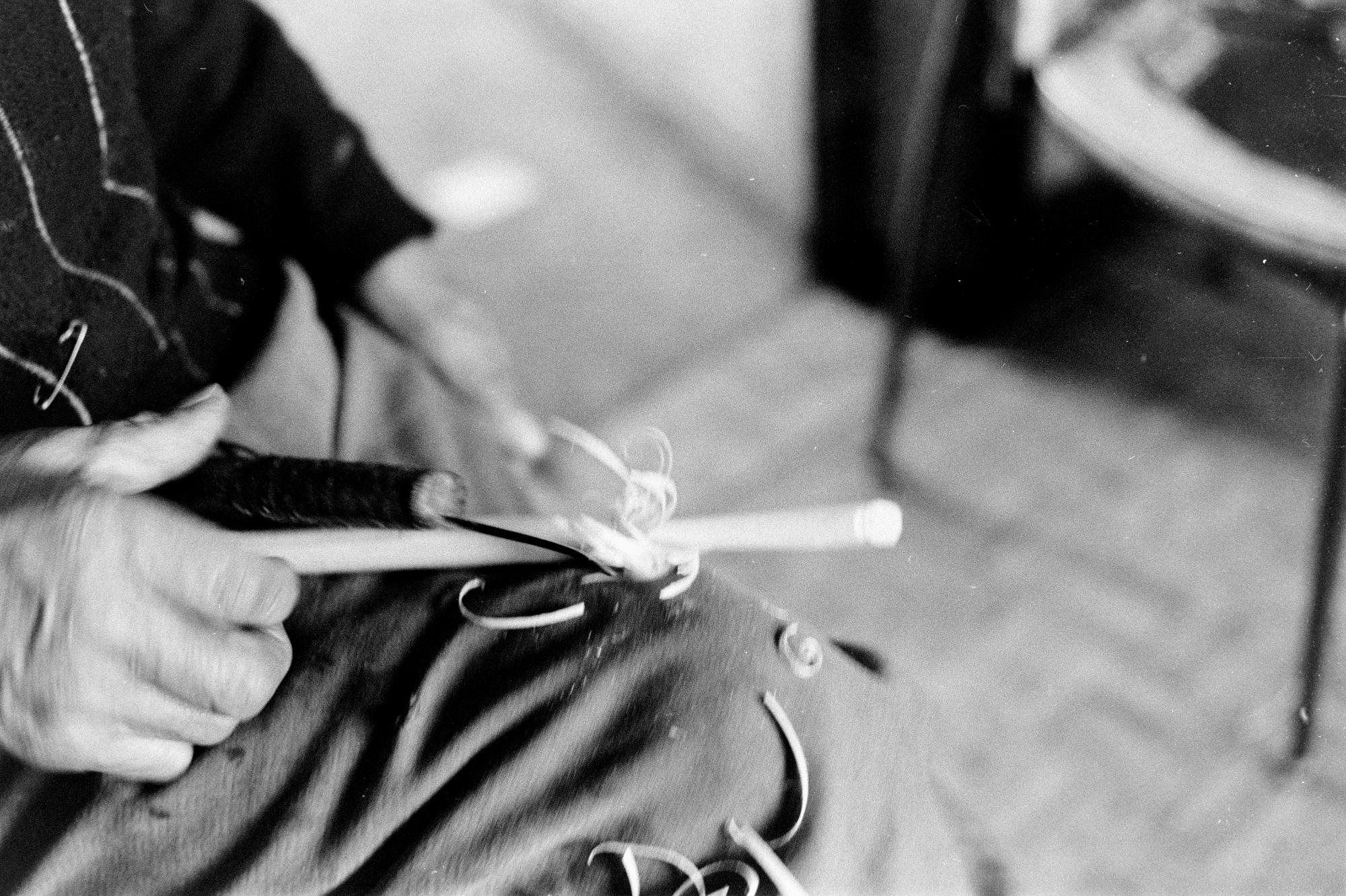 • Man täljer trästicka.