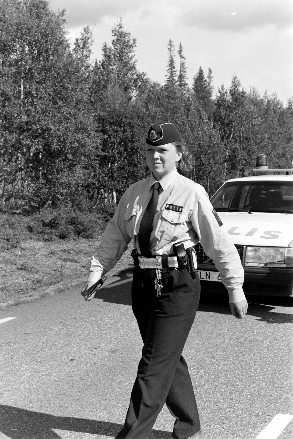 Simultan samisk vägblockad med fastkedjade aktivister på E14 vid Storlien och på E12 vid Tärnaby i protest mot den fria småviltsjakten. En reform beslutad av regeringen Bildt, som Girjasdomen i januari 2021 visade vara felaktig. Samefolkets chefredaktör Olle Andersson skildrar i text och bild en vredens, besvikelsens och de hårda ordens dag på E14. Tidningens Nora Wasara Larsson bevakade aktionen på E12:an, där Sven Mikaelsson fotograferade bland andra Ola Pittsa, som blev bortburen av polis. Se och läs följande bilder om hur en irriterad trafikant ville se samerna bortspolade från vägen, en annan att det borde bli fri jakt också på lapparna och en tredje bad samerna dra åt helvete. Aktionerna var ett tidigt exempel på fredlig civil olydnad, där aktivisterna lämnade passage för utryckningsfordon och där det fanns samer med uppgift att lugna ner situationen och berätta om skälen till varför de genomförde aktionerna. Samefolket nr.9 1994.