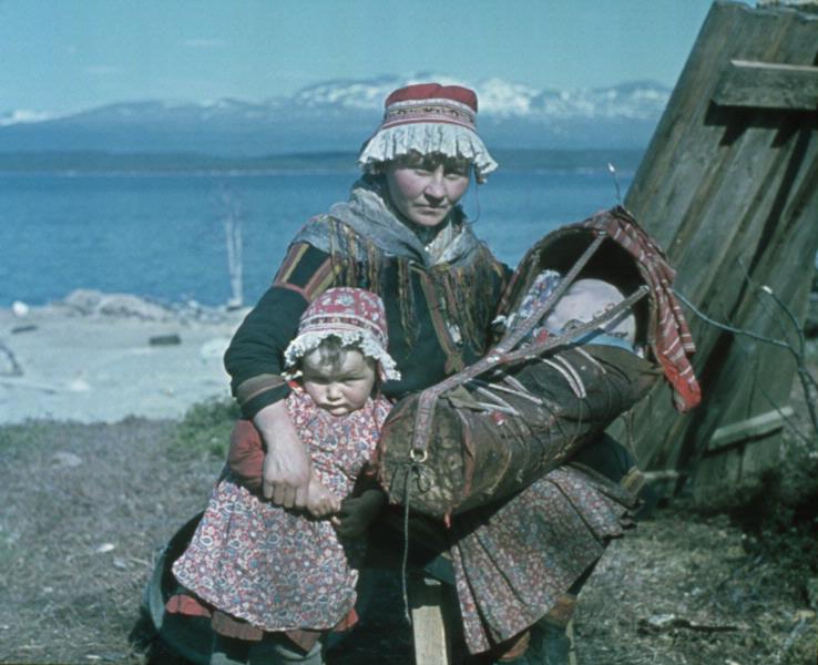 viste, barn, kvinna, karesuandosamisk dräkt, nordsamisk dräkt, vagga, familj, sámefuolkke