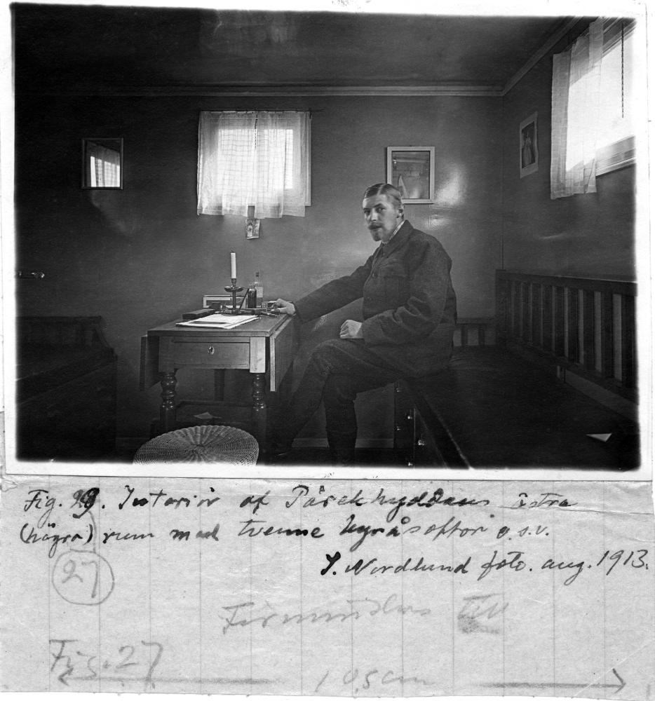 • figur 27. interiör av Pårekhyddans östra (högra) rum med två byråer, soffor o.s.v. I. Nordlund foto augusti 1913, tillhör professor Axel Hambergs fotosamling. OBS. fotograf I. Nordlund