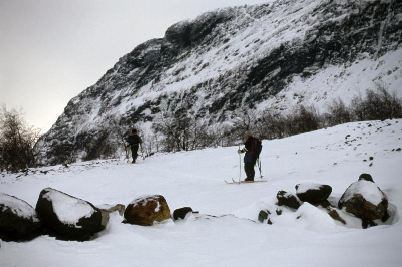 skog, ripjakt, fjäll, snö, vinter, björk, skidåkning, sten, vapen, gevär, tjuojgge, vuobme, soahke, birsso, giergge, várre, dálvve