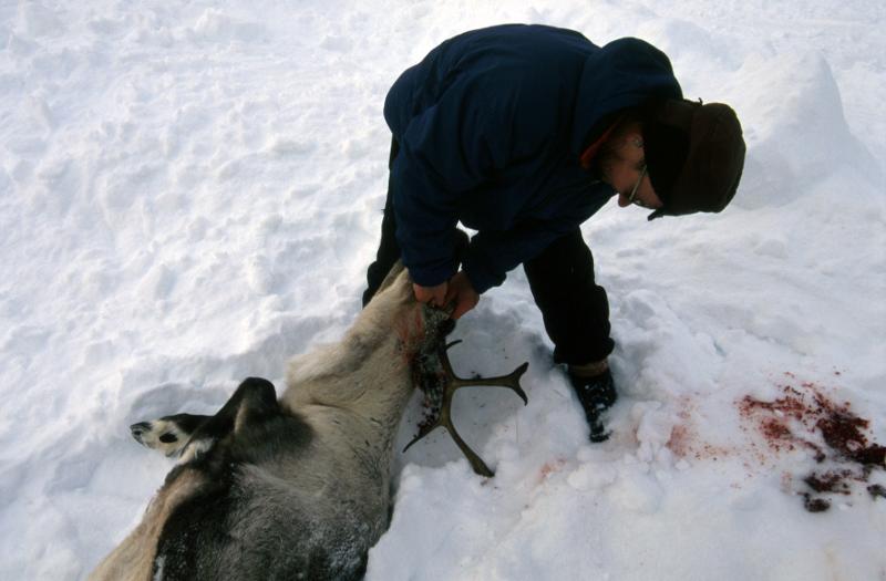 • Husbehovsslakt vid renskiljning i 33:ans renskiljningshage. Hagen har fått sitt namn på grund av att den ligger 33 km efter Karatsvägen från Jokkmokk. En man tar en matren och ska börja flå. Han börjar vid munnen och örat.