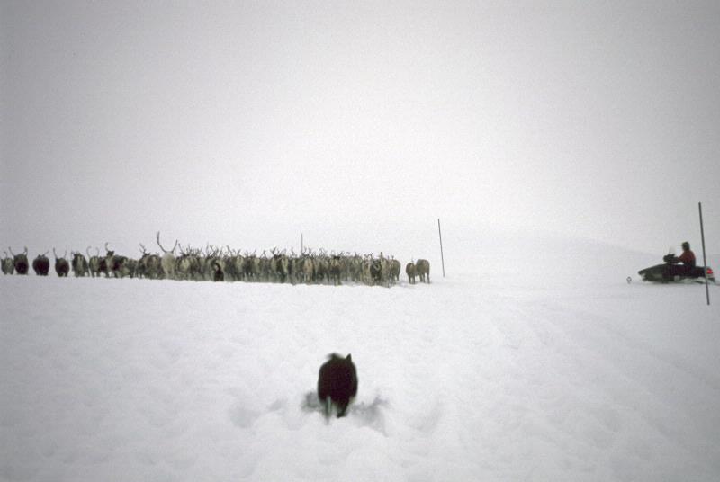 hund, snöskoter, snöfordon, snö, ren, renhjord, vinter, renflock, dálvve, räjnnoällo, boatsoj, jåhtem, muohtavuojan, bena