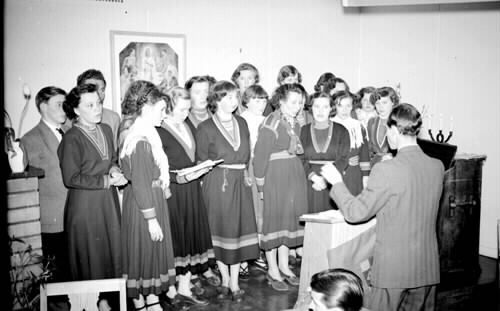 sångkör, rektor, kvinna, grupporträtt, lávlár, gåvvå, lávlla