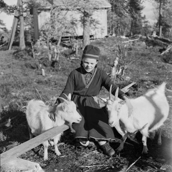 kvinna, mössa, lulesamisk dräkt, uthus, dräkt, kvinnokolt, get, gájttsa