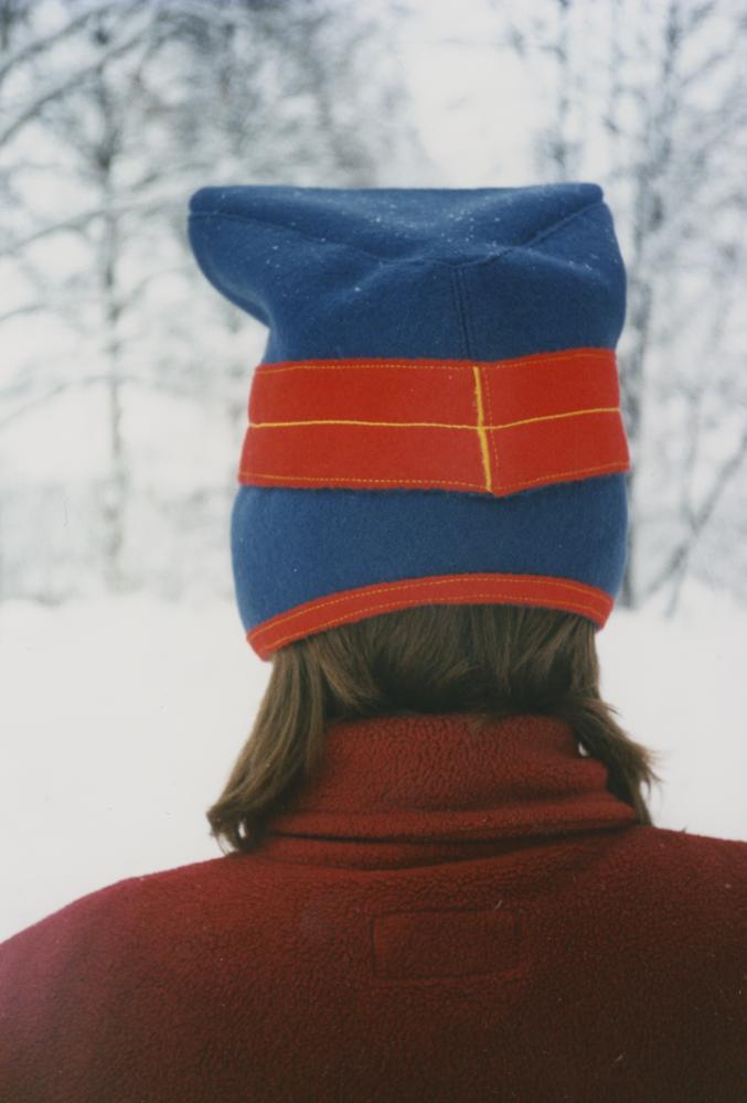 • Slöjd tillverkad av Anna-Stina Svakko. Mössa från Gällivareområdet bakifrån på kvinlig modell