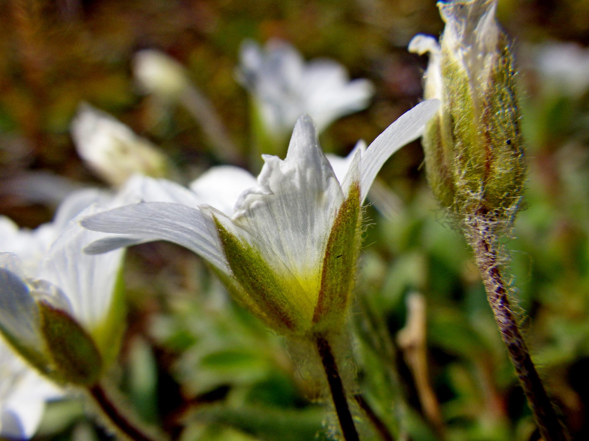 • Snöarv (AJN:007633), närbild blomma underifrån.