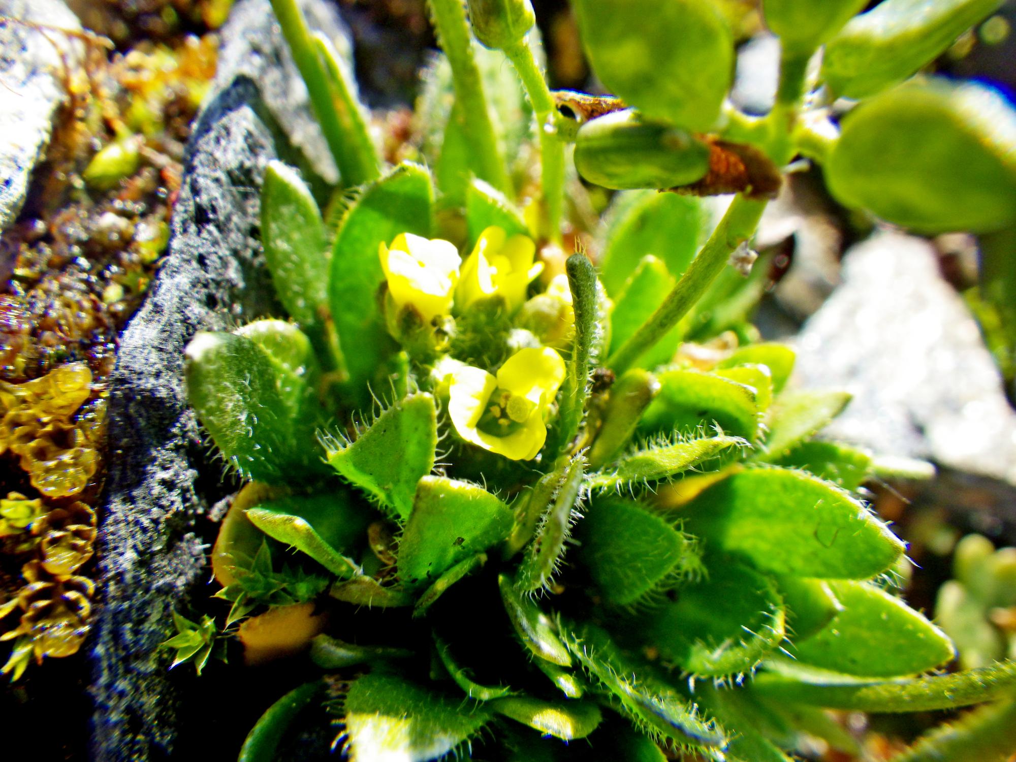 • Gulldraba (AJN:007634), närbild bladrosett och blommor.
